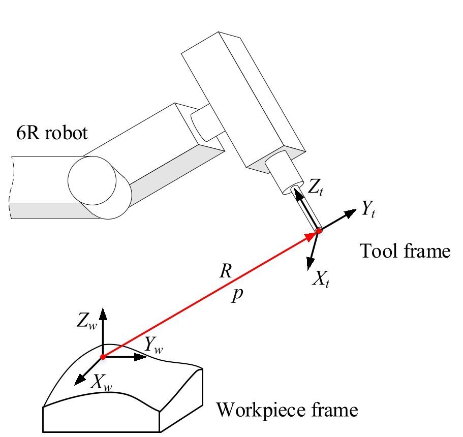 For the robotic machining system as shown in Fig. 1, the transfer matrix of tool frame related to workpiece frame can be represented by a homogeneous transformation matrix: