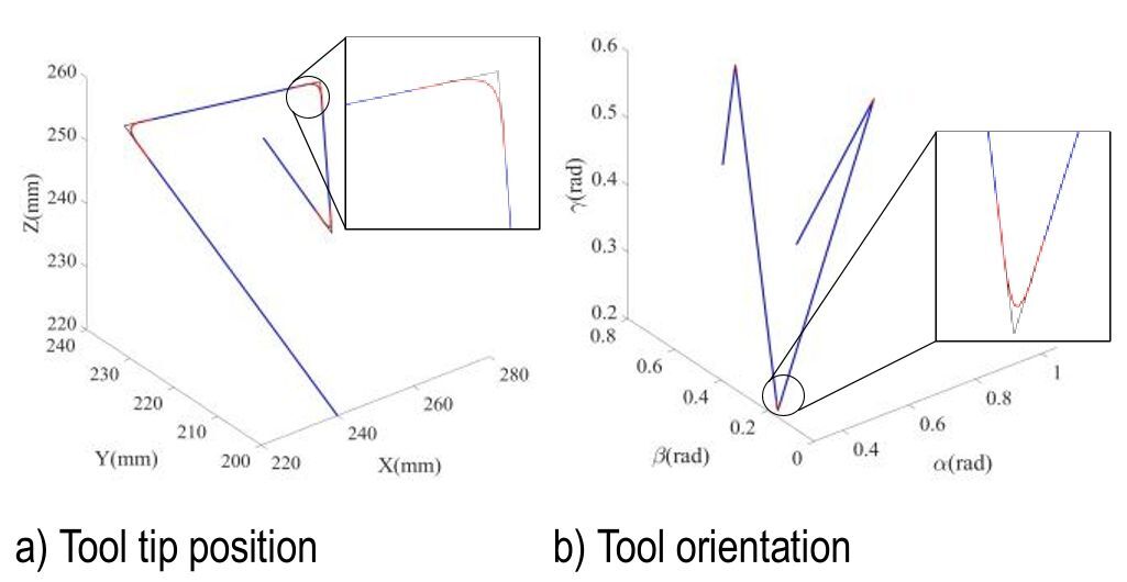Besides, one third of the segment should be retained to adjust the synchronization of the tool tip position and tool orientation: