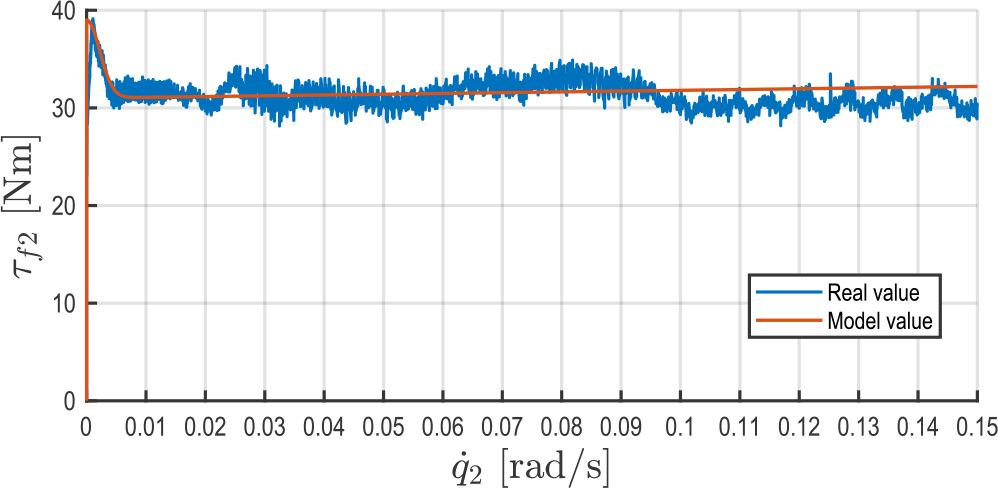 where: ui – actuator torque for joint i, τfi. – friction torque, τgi – gravitational torque. Assuming friction torque is symmetric around zero velocity, the torques recorded for constant positive and negative velocitiesSubtracting both equations gives: