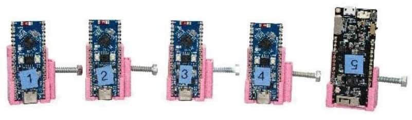 The access points (APs) used were ESP32 devices and two TP-Link Wi-Fi routers. The ESP32 devices are shown in Figure 7. They were mounted on tripods. The test devices operated under the IEEE 802.11 b/g/n Wi-Fi standards.