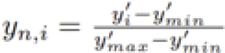 where p is usually equal to 0.3, [23] and the geometric mean of the standard deviations for the x and y values is used.To avoid problems with one dimension dominating, which happens for the values of X, some additional steps are proposed. Only the values for local extremes are selected and the values of Y are moved to the beginning of the coordinate system (Y becomes a set of distances between extremes). Next the data are normalized using the equations: