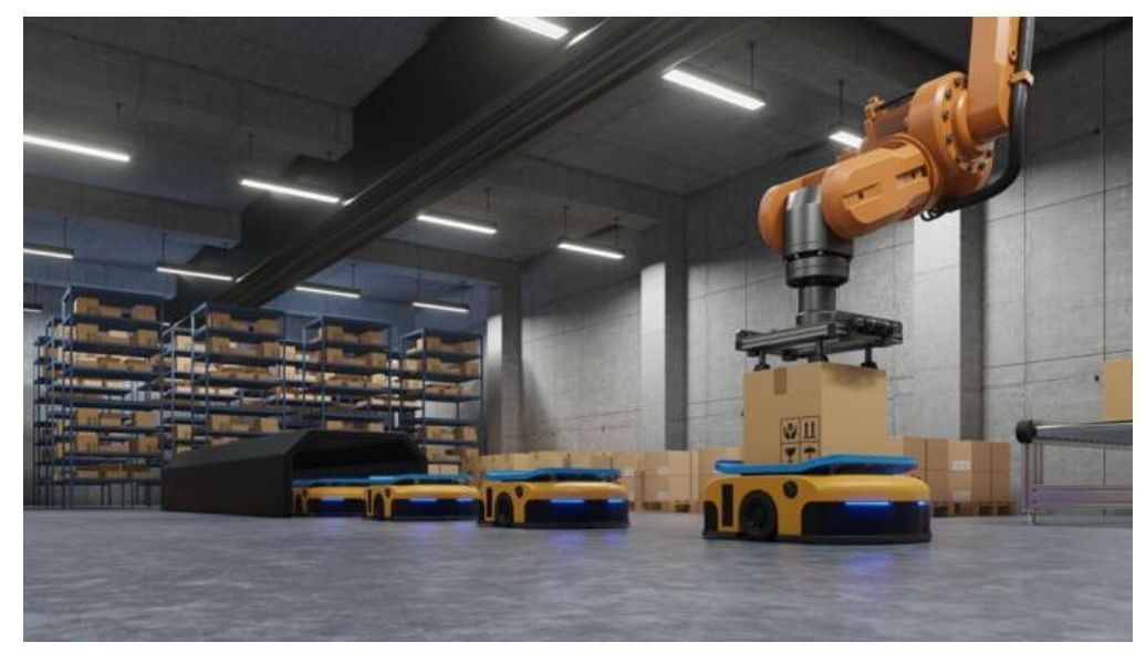Application of AMRs in advanced manufacturing is not just a technological advancement but also a strategic move to address the increasing complexity of modern logistics operations [10]. These robots are equipped with sensors, cameras, and AI algorithms, are capable of navigating dynamic environments, performing tasks such as picking, sorting, and transporting items with minimal human intervention [11]. AMRs work alongside human workers in tasks such as sorting and inventory replenishment, fostering human-robot collaboration. As a result, this level of automation reduces human error, increases throughput, and optimizes resource allocation in logistics operations [12].