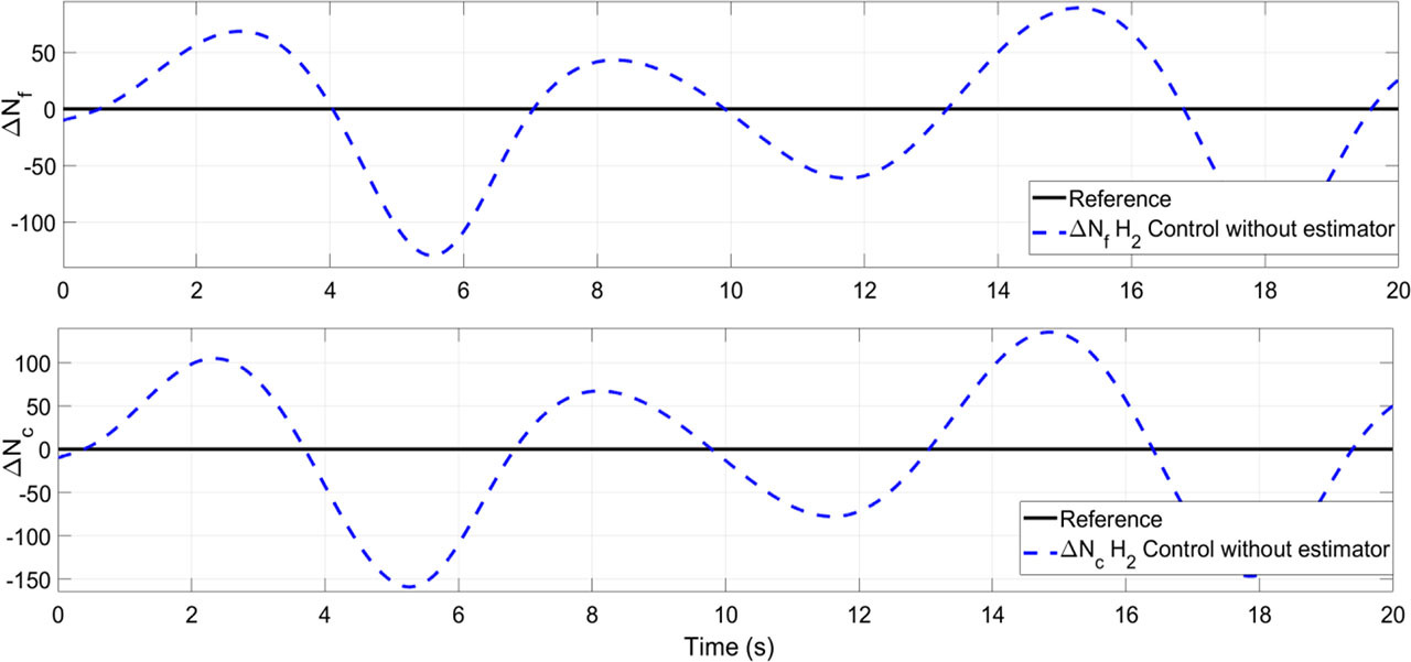 The 2 control responses of the fan and core speed increments without an estimator
