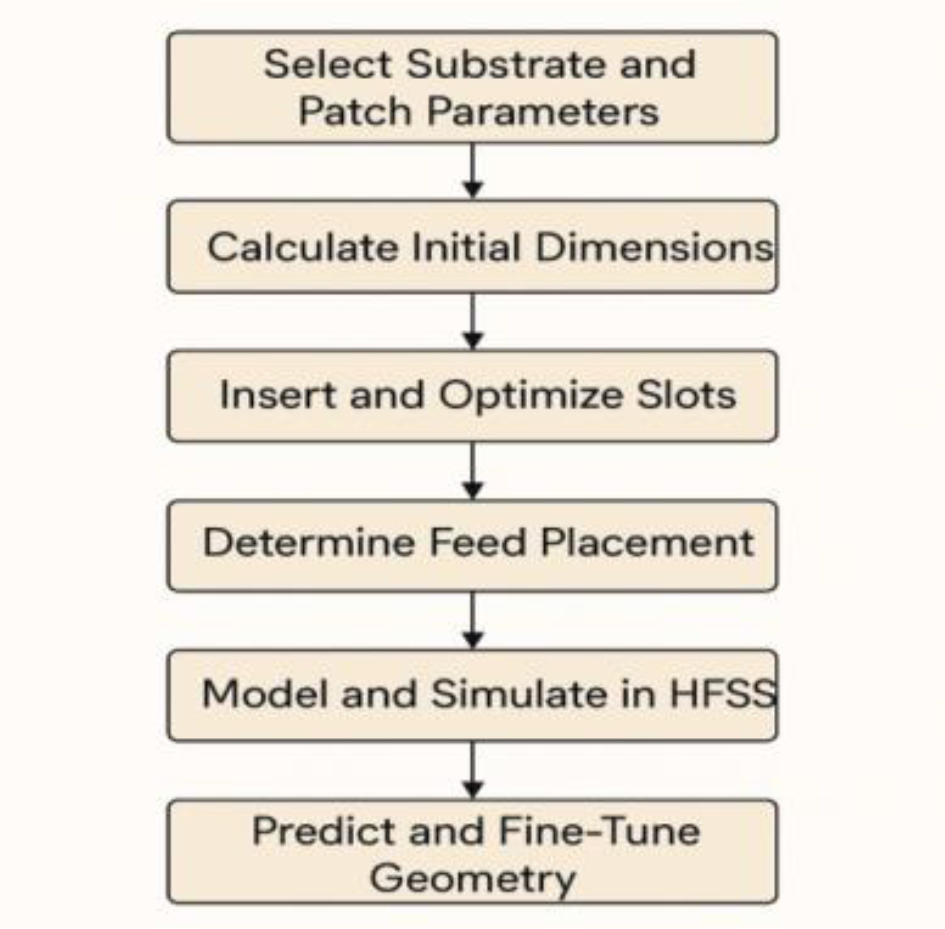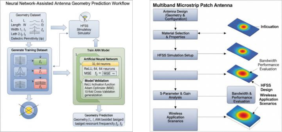 This section outlines the complete workflow used in the design and optimization of the proposed multiband microstrip patch antenna (MPA), integrating both computational electromagnetics (via HFSS) and data-driven optimization (via neural networks).