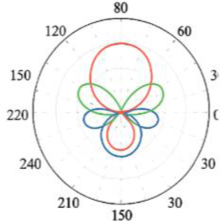 The figure 8 displays the 2D far-field radiation patterns of the antenna at its resonant frequencies. The patterns exhibit broadside radiation, typical of patch antennas, with symmetrical lobes in the desired direction, The front-to-back ratio exceeds 15 dB, implying that the antenna radiates most of its energy forward, minimizing back lobes. And The patterns are stable across the bands, validat-ing the proposed antenna’s suitability for multiband wireless com-munication applications.