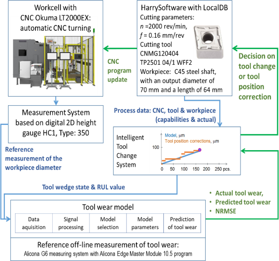 In the case of the Intelligent Tool Change System, the model is developed based on historical data of the process trace and tool wear. The maximum cutting edge reduction and the number of workpieces machined with the given tool are determined. As indicated in section 4.2, these values do not guarantee achieving the required workpiece accuracy due to the cutting edge reduction but serve as baseline data for developing the appropriate model selection strategy.