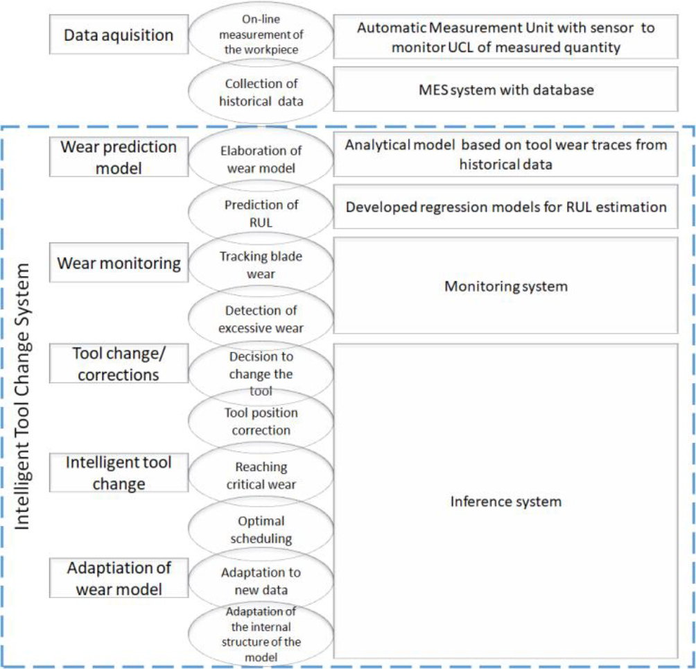 In the case of the Intelligent Tool Change System, the model is developed based on historical data of the process trace and tool wear. The maximum cutting edge reduction and the number of workpieces machined with the given tool are determined. As indicated in section 4.2, these values do not guarantee achieving the required workpiece accuracy due to the cutting edge reduction but serve as baseline data for developing the appropriate model selection strategy.