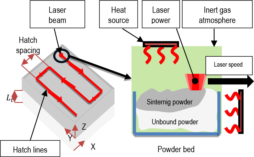 Fig. 1 also provides an explanation of the technological parameters in SLS technology such as layer thickness Lt, hatch spacing, laserpower and laser speed.