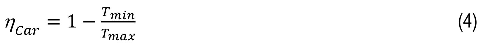 The Carnot efficiency was calculated using the following relationship:
