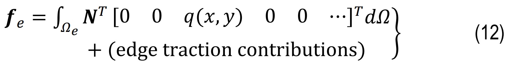 Element nodal force vector due to transverse load q(x,y) is shown in Eq.12 and mentioned in Fig. 2 . The laminated plates are analyzed under two standard transverse loading forms: sinusoidal distributed load (SDL) and uniformly distributed load (UDL).