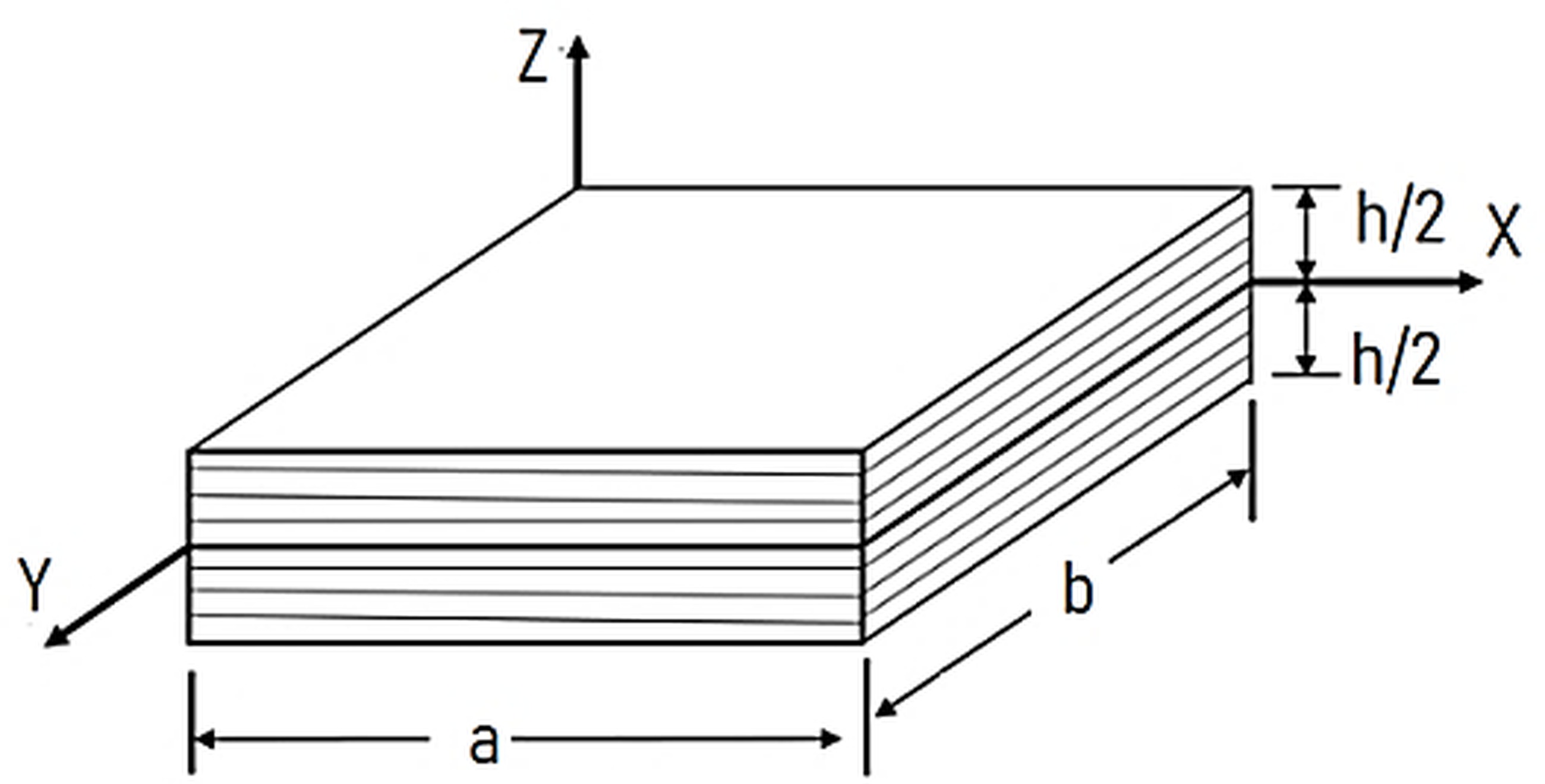 Consider a laminated rectangular plate as shown in Fig.1 occupying the mid-surface domain(x,y)∈[0,a]×[0,b] with total thickness h and coordinatez∈[-h/2]×[+h/2].The laminate is composed of N perfectly bonded, homogeneous orthotropic plies. Each ply k has thickness hk , fiber orientation Qk , and reduced constitutive matrix Q(k) .