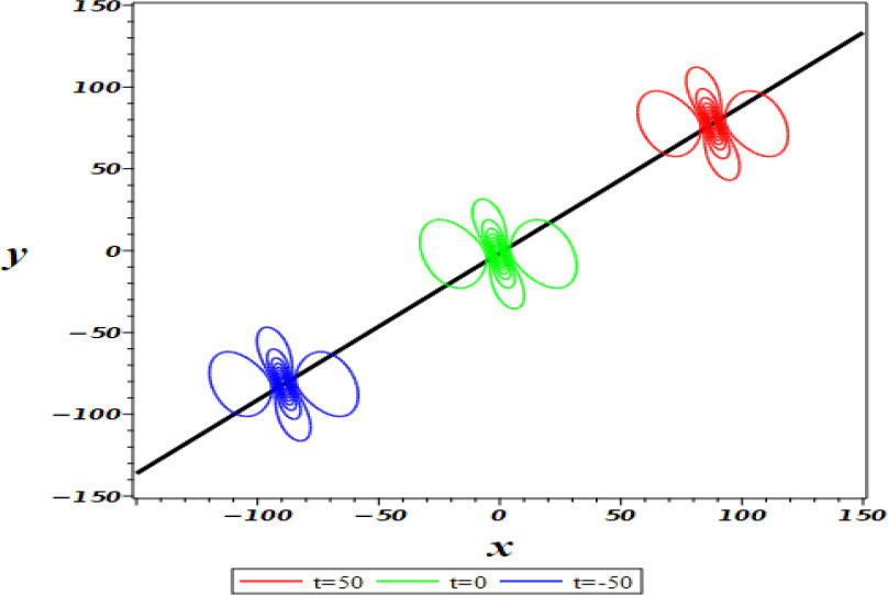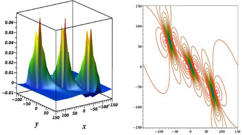 whereThe result of this solution is presented in Fig. (10), which is a complex-three-soliton solution.