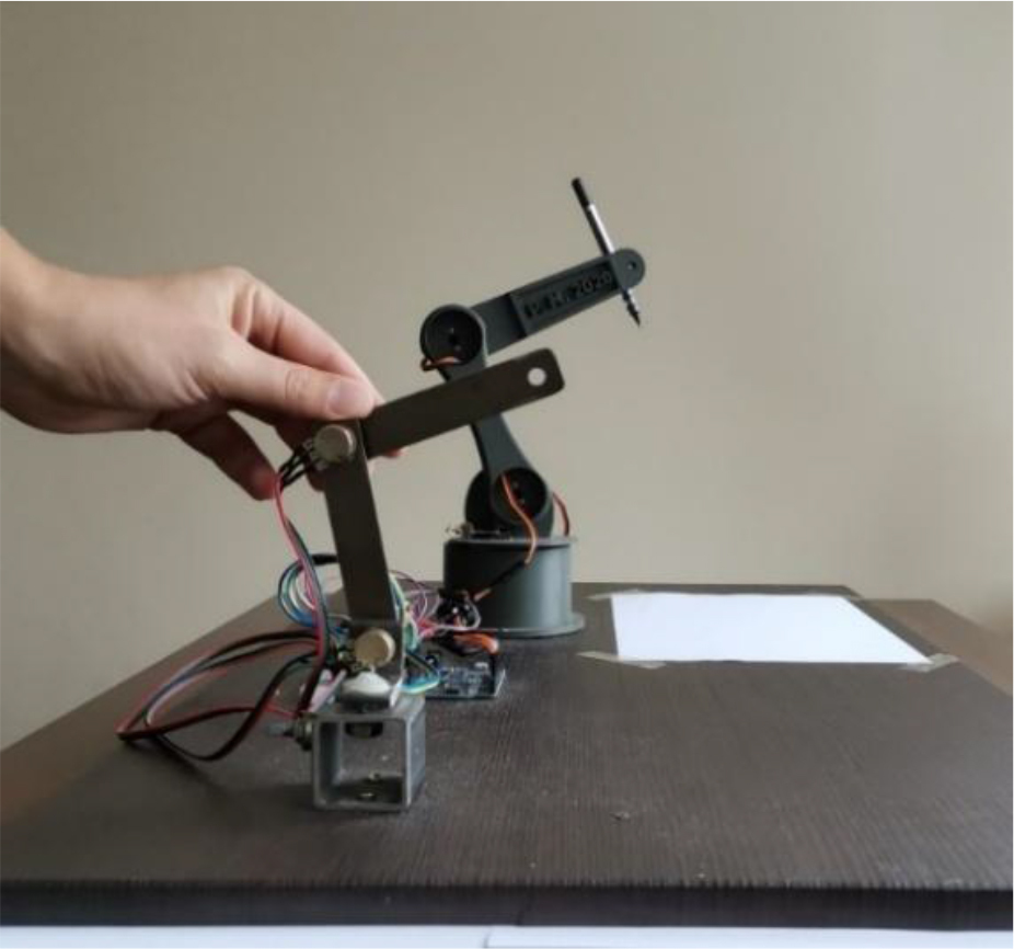 We decided to combine several types of control, creating an original method for designing the tra-jectory of the manipulator's movements. Through the activation of potentiometers in the form of a simplified physical model and the separation of the electronic system of the robot and phantom, the manipulator became a completely independent device. This enabled online robot programming exactly where it was supposed to work – a phantom connected directly to the manipulator – and offline pro-gramming such that on the basis of the model's movements, positions could be saved in the electronic system. Then, by connecting the system to the robot, the saved program was recreated. These two methods for planning movements are related to teach-in programming, except that the trainer need not be in front of the machine. In addition, with the appropriate use of specific data transfer, it is possi-ble to train the robot in teleconference mode. Therefore, the developed solutions enabled the combi-nation of all types of control: direct, indirect, and the use of direct programming languages. Additionally, PTP (point-to-point) control was used. This allowed the manipulator to move smoothly from point to point (stored in memory) according to the set motion trajectories by moving the phantom. In addition, by writing program code, the trajectories of the robot’s movement could be manually entered and set. In addition, it is possible to determine the "home" position of the manipulator, from which it always starts the execution of the stored program, and the speed of the motor movement, thereby adjusting the positioning accuracy.The logic diagram of the algorithm is shown in Figure 6.