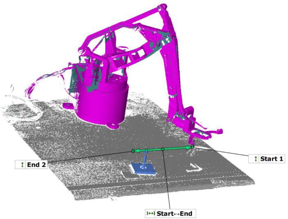 Based on the scanned data, a CAD model of the real station was developed, and the starting point of movement was fixed. Then, the real object displacement was analyzed in relation to the fixed start and end points of the movement, and it was possible to measure a real object in relation to its nominal values.