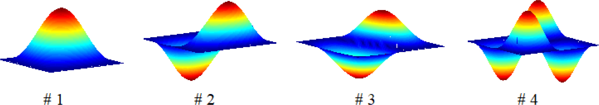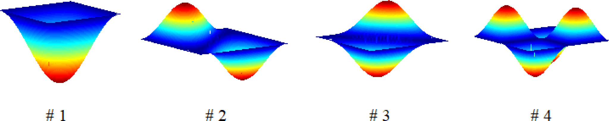 Figs. 5 and 6 present the first four modeshapes of FGS plates. Observing that the 2nd and 3rd eigenmodes are the same as each other, owing to the FGS plates under the same “S” or “C” boundary conditions at the edges.