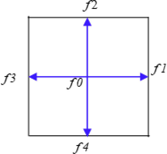 The discrete velocities for the D2Q4 (Fig. 3) are defined as follows: