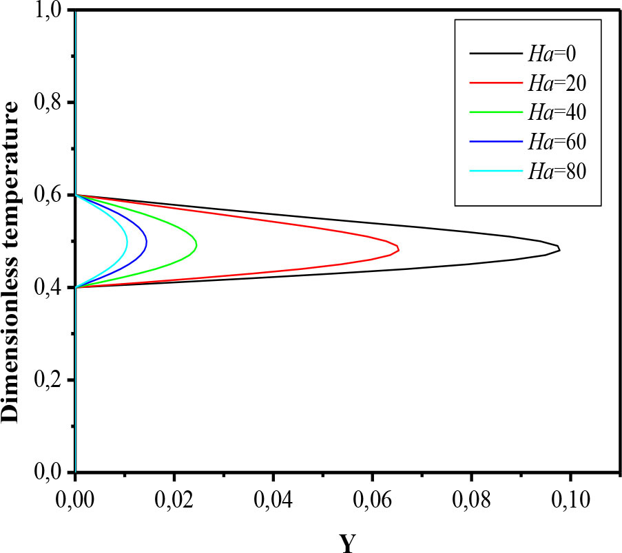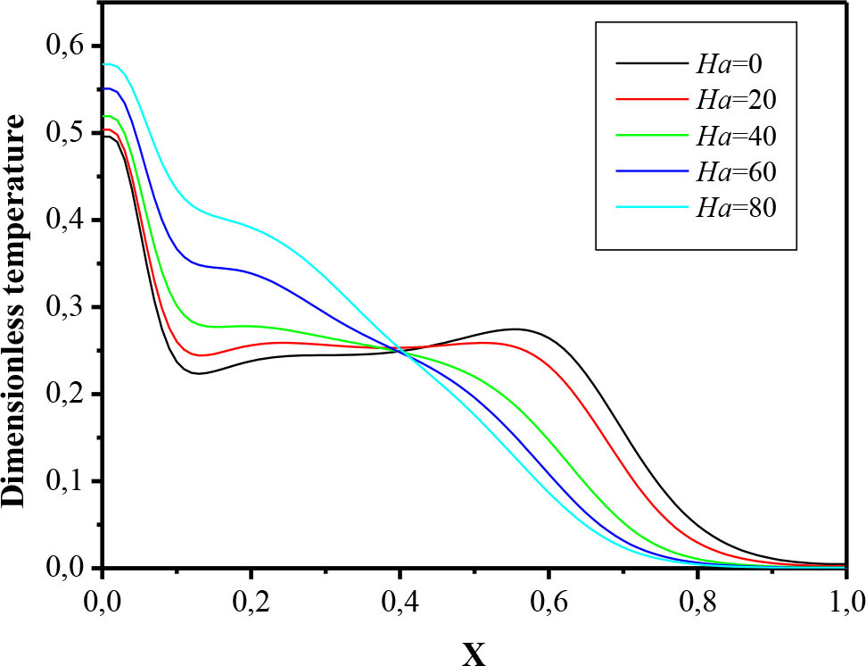 – The temperature in convergent cavity increases with an increase in Re, whereas the opposite effect is observed when Ha increases.