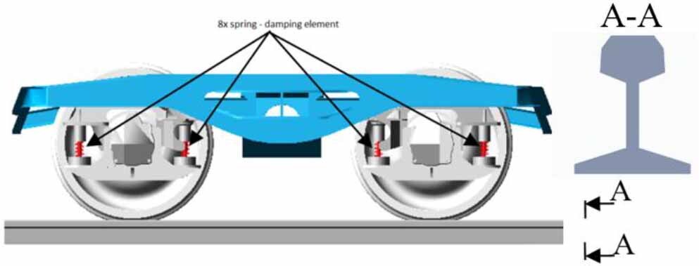 In order to improve the operation of Y25 bogies, modifications of the bogie structure are used by optimizing the weight and strength of bogie frames [22] and modifications of the wagon bogie suspension due to the deterioration of the running properties of bogies when moving at higher speeds [2]. Such a solution is the use of a passive system of cylindrical rods transversely anchoring the opposite rolling bearing housings. The modeling of the wagon body suspension and FEM analysis of the pivot socket with friction lining were used in the paper [23]. Tests are also carried out on reducing noise in running gears by using wheels with noise dampers or using inserts made of another material [24]. However, the most common problem with Y25 bogies is the difficulty of selecting the right suspension characteristics for moving at high speeds. As a result of the test [4], it is possible to optimize the values of wheel contact forces by performing analytical calculations and computer simulations within the range of the given wagon travel speeds on tracks described according to the standards [5, 9, 18].