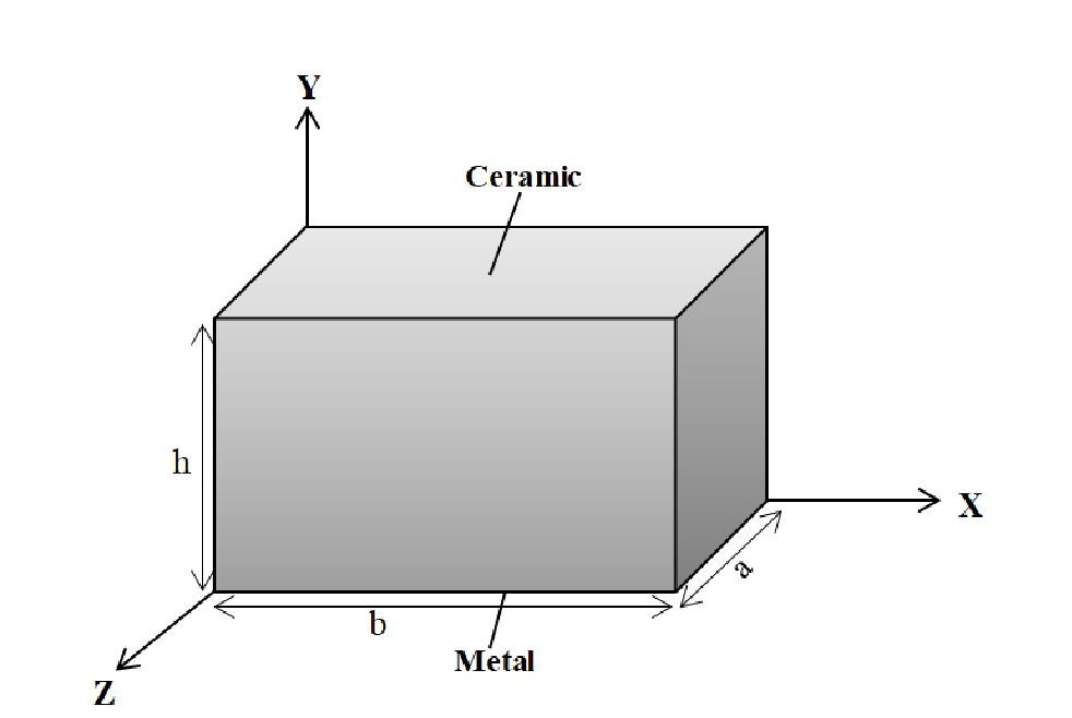 Pc and Pm represent the Young's modulus (E), Poisson's ratio (v), and mass density (ρ) of the ceramic and metal materials, located at the top and bottom surfaces of the plate, respectively. The volume fraction of the ceramic material, Vc is expressed as: