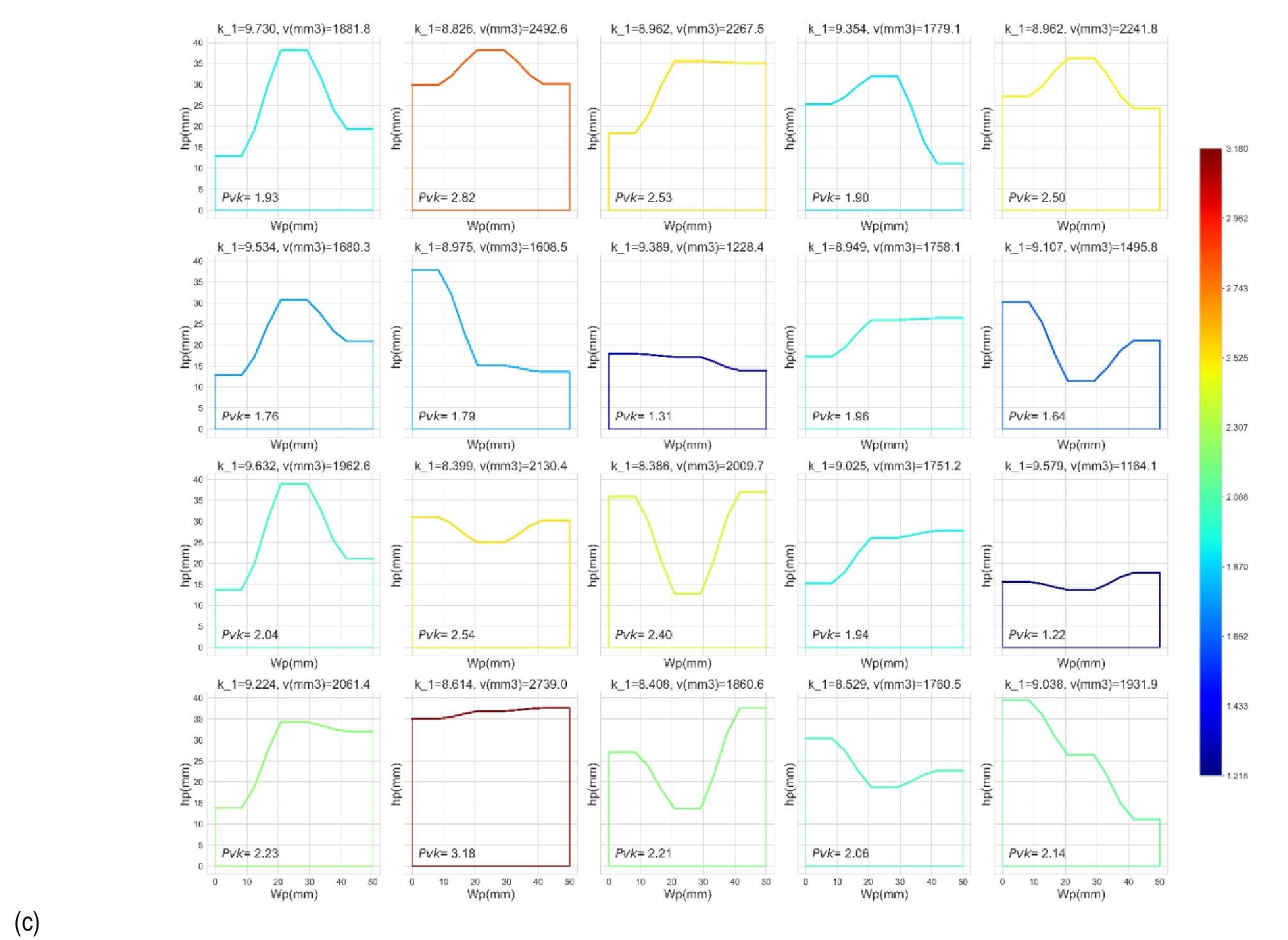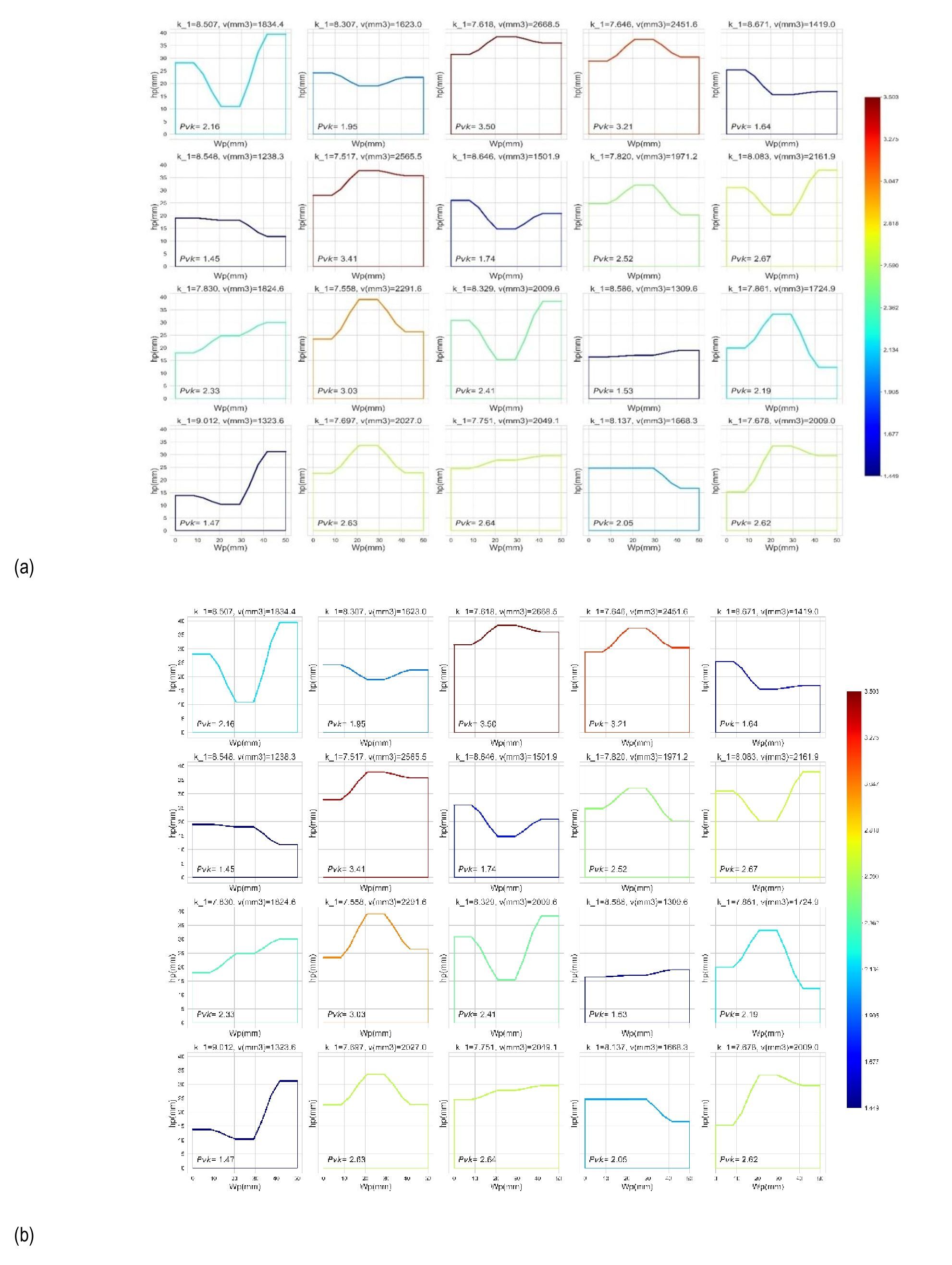 Figure 14 shows the relationships between patch width (Wp), patch height (hp), stress intensity factor K1 , and patch volume V in the patch optimization dashboard. Configurations in this figure are Pareto-optimal solutions that other the best trade-offs between material usage and stress reduction. To enable comparisons of different designs more easily, a normalized parameter is defined, Pvk = (v /k1 /100), which enhances flexibility for engineers to choose configurations according to specific goals, such as minimum material use or maximum reduction of stresses. The dashboard also shows the variation in crack length (10mm, 18mm and 26mm) in the optimization process. This presents a more complete approach compared to other studies by combing Abaqus simulations with multiobjective optimization using NSGA-II. In the case of conventional optimization techniques, they are usually performed by using deterministic methods or trial-and-error approaches by using infnite element methods (FEM), which limit the search for the solution space. By contrast, NSGA-II finds a set of non-dominated solutions that show a better set of volume-K1 trade-offs and provide the decisionmaker with an enhanced perspective. It considers some critical enhancements over previous literature. For instance, (Yang et al, 2024) [22] proposed the optimization of patch designs through the use of the stop-hole technique; their reliance on manual parameter tuning hindered the efficiency of the simulations themselves. Using the technique of NSGA-II, our method gives a Pareto front of optimal solutions without manual intervenetion. Meanwhile, genetic algorithms were used by (Poirier et al, 2013) [42] in single-objective optimization, either minimizing volume or reducing stress concentration, but our work extends the previous research by tackling both objectives simultaneously and presenting those solutions interactively. The proposed approach of coupling FEM simulations with NSGA-II not only accelerates the optimization process but also effectively provides the optimal solutions. The major advantage of this approach is the dynamic selection of Pareto-optimal solutions, thus enabling the engineers to make choices in designing patches that satisfy specific constraints. The introduction of the parameter Pvk opens up new avenues for the comparison of patches in view of sustainable use of materials with no compromise on crack resistance. The search for Pareto-optimal solutions means less computational effort because fewer unnecessary simulations are required; thus, time and resources are saved. The present study represents the first attempt to integrate FEM simulations with multiobjective optimization using NSGA-II. It provides a solution for crack repair that is workable, efficient, and sustainable through combining flexible solution selection, interactive visualization, and the innovatory parameter. This work makes a valuable contribution to fatigue crack repair in metals and especially to the discipline of repair optimisation, enhancing the effectiveness and efficiency of optimization in patch design compared to methodologies that have thus far been followed.