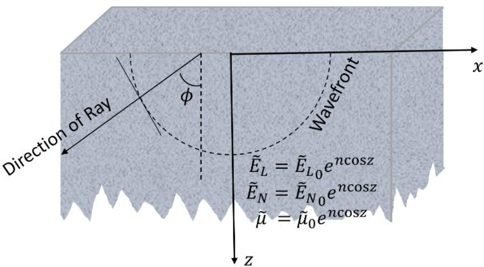 The current article studies the seismic quasi-waves in the cross-anisotropic material, with detailed calculations for the quasi-wave velocities. The problem has been discussed with the help of the coordinate system (x, y, z), where x in the horizontal direction and z in the downward direction (positive direction), shown in Fig. 1. The stress-strain relationship is as follows: