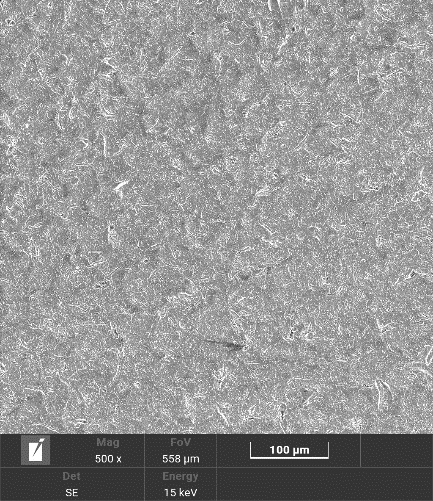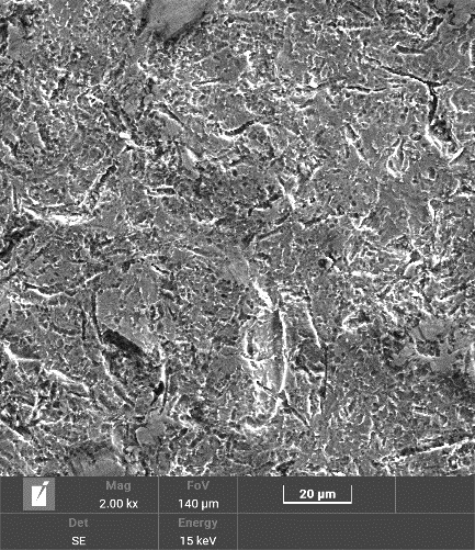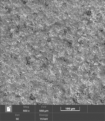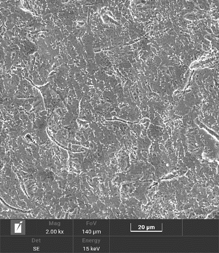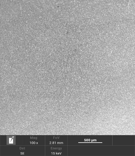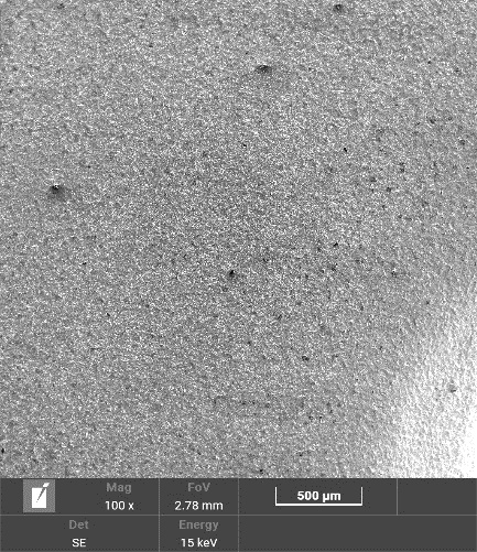 Microscopic examinations were performed on the upper and lower surfaces of the implant adjacent to the bone. Both surfaces were characterized by similar topography. There were numerous, evenly distributed dents on the surface, which were remnants of vibration processing - Figure 3.