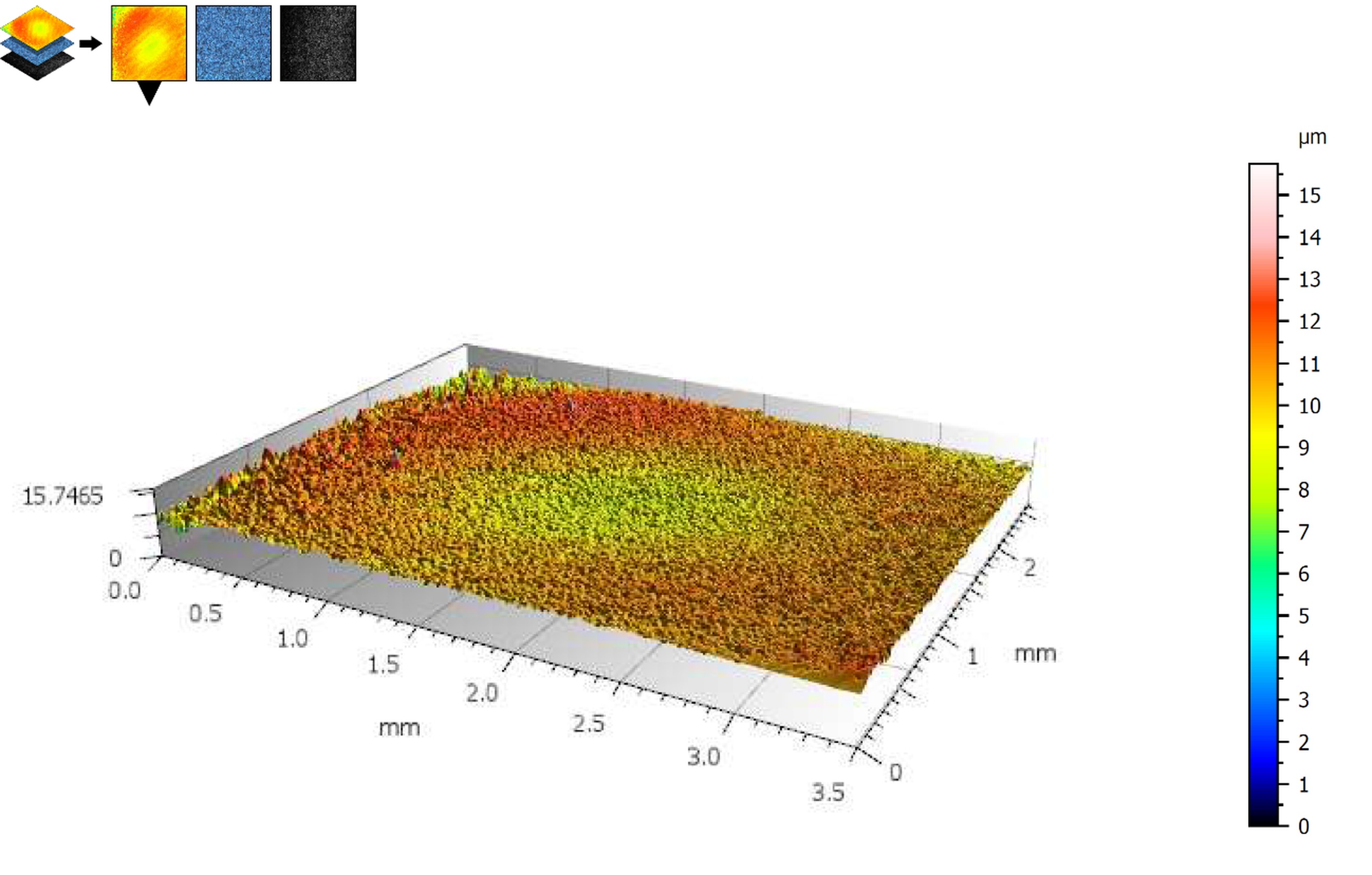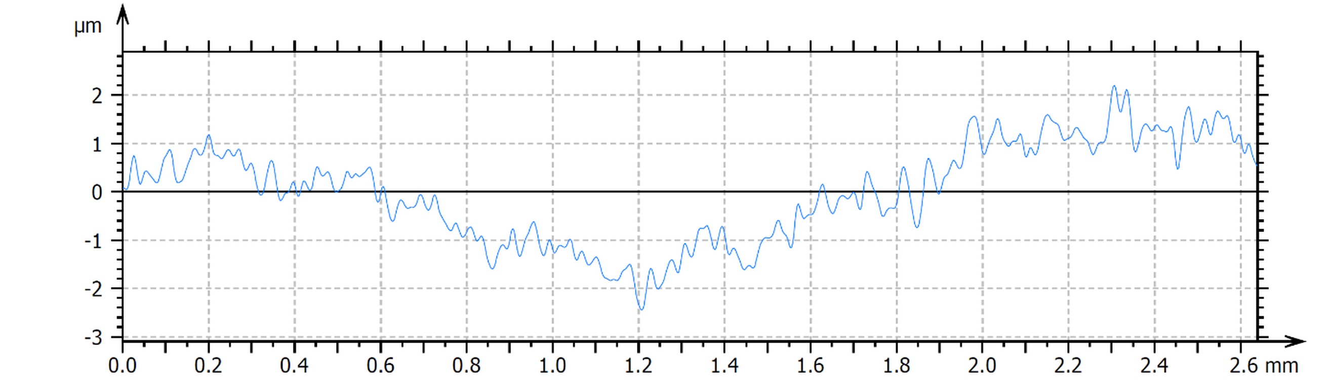 Analysis of the test results indicates varied surface roughness. The lower surface adjacent to the bone was characterized by greater roughness - Tables 1, 2. An example image of the external surface (3D) and profile of the implant is shown in Figures 4 and 5, respectively.