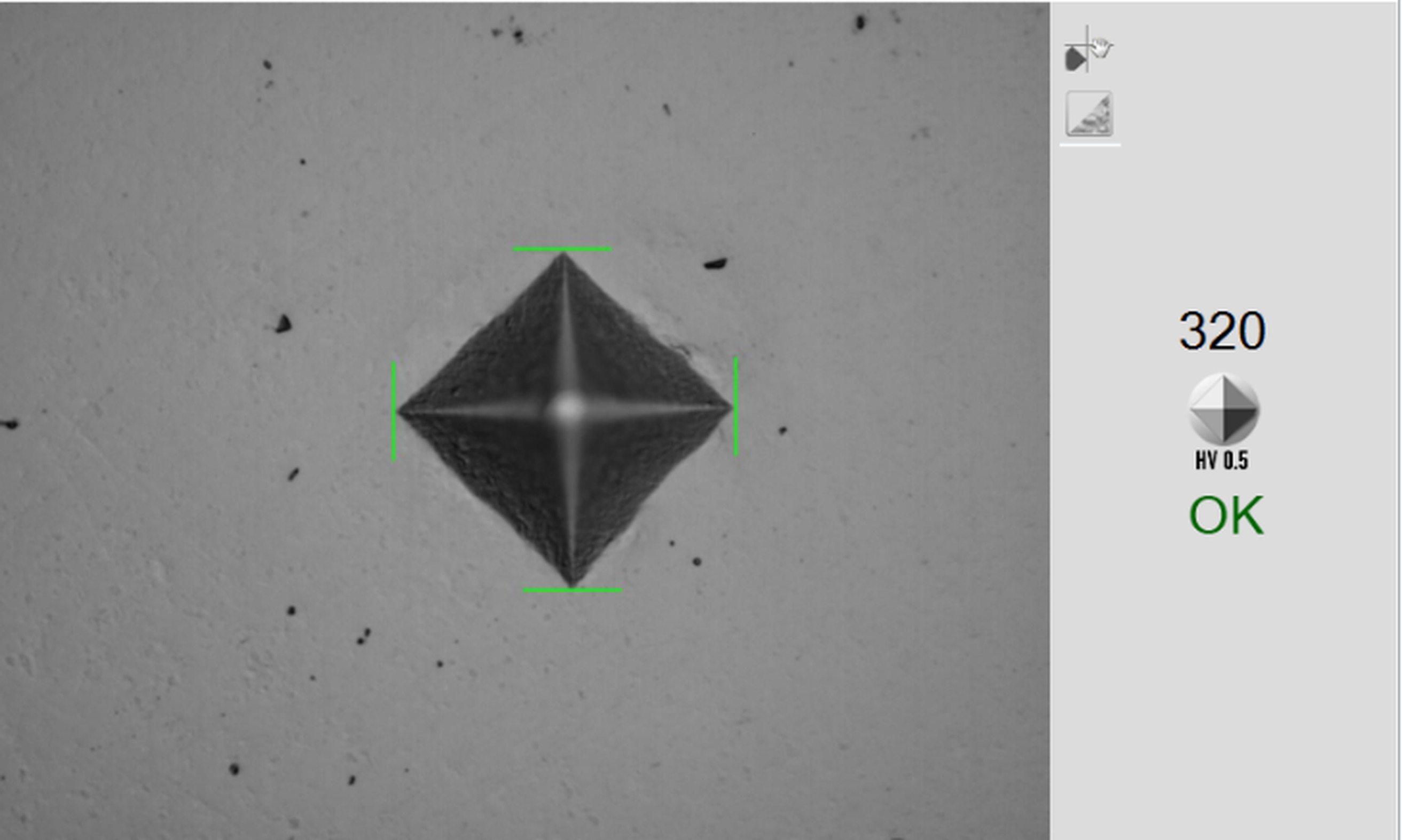 The measurements performed did not show significant differences in hardness on the longitudinal and cross-sections of the tested samples. It was found that the average hardness value was in the range of 307 ÷ 328 HV0.5 - Figure 7.