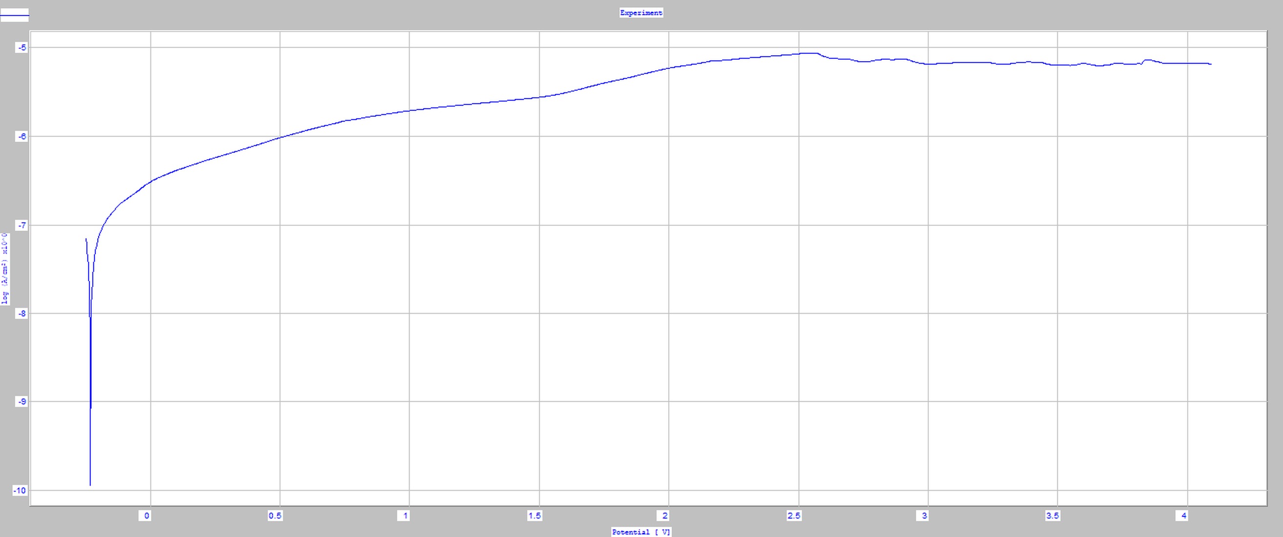 The average values of the corrosion potential Ecorr and the polarization resistance Rp determined using the Stern method were Ecorr = -255.5 ± 10mV and Rp = 480.17 ± 55 kΩcm2, respectively.