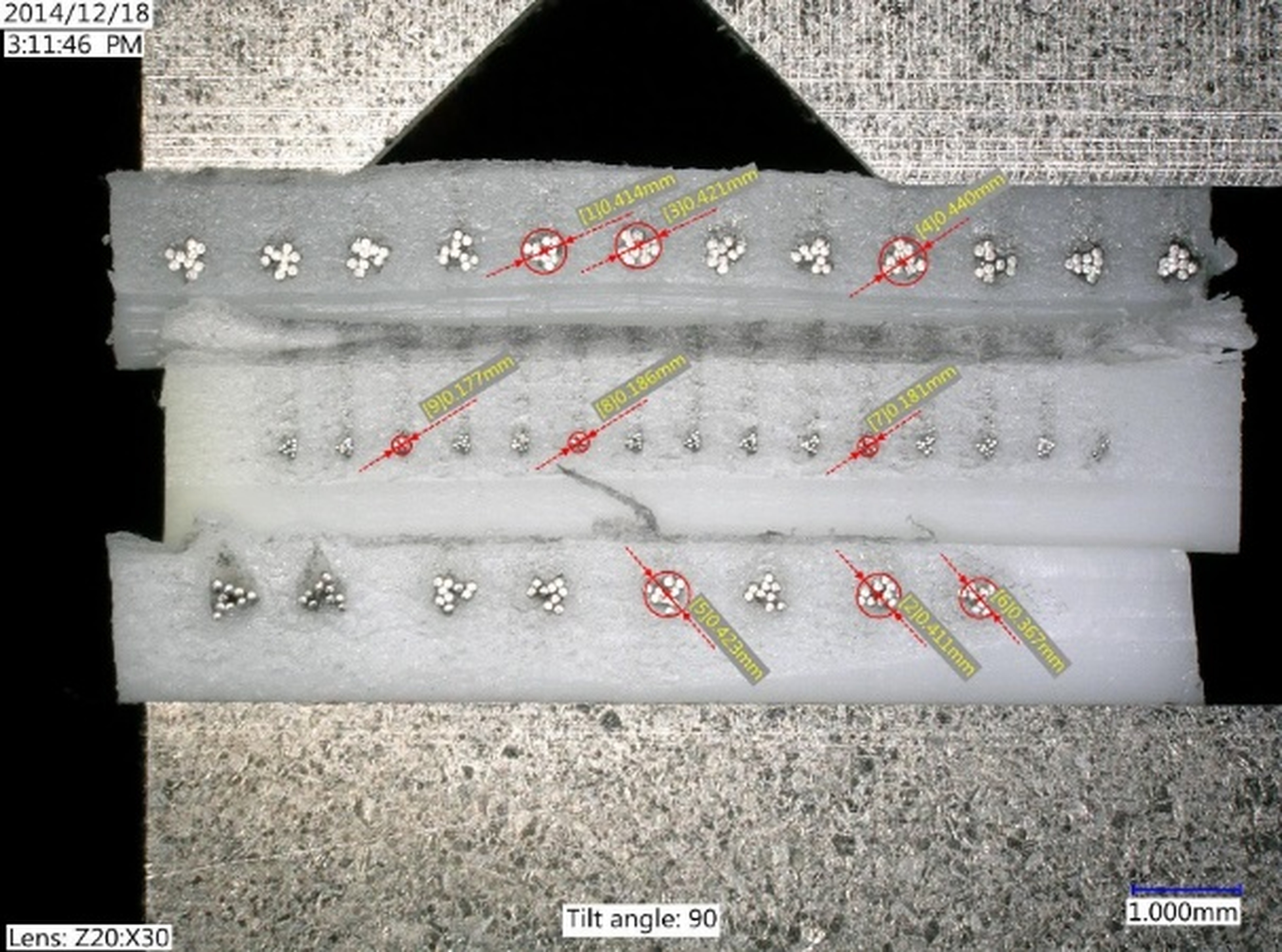 The results of the resistance measurement between the cords presented in Fig. 6 depend on the distribution of the cord in the belt support layer. Higher resistance values occur between more distant strands and this does not depend on the type of belt.