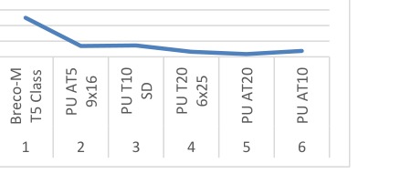 On the other hand, Fig. 6 shows the change in the average resistance of a single cord RIa for the tested belts over one meter of length. The graph shows the lower cord resistance of the larger pitched belts, which is due to its larger diameter.