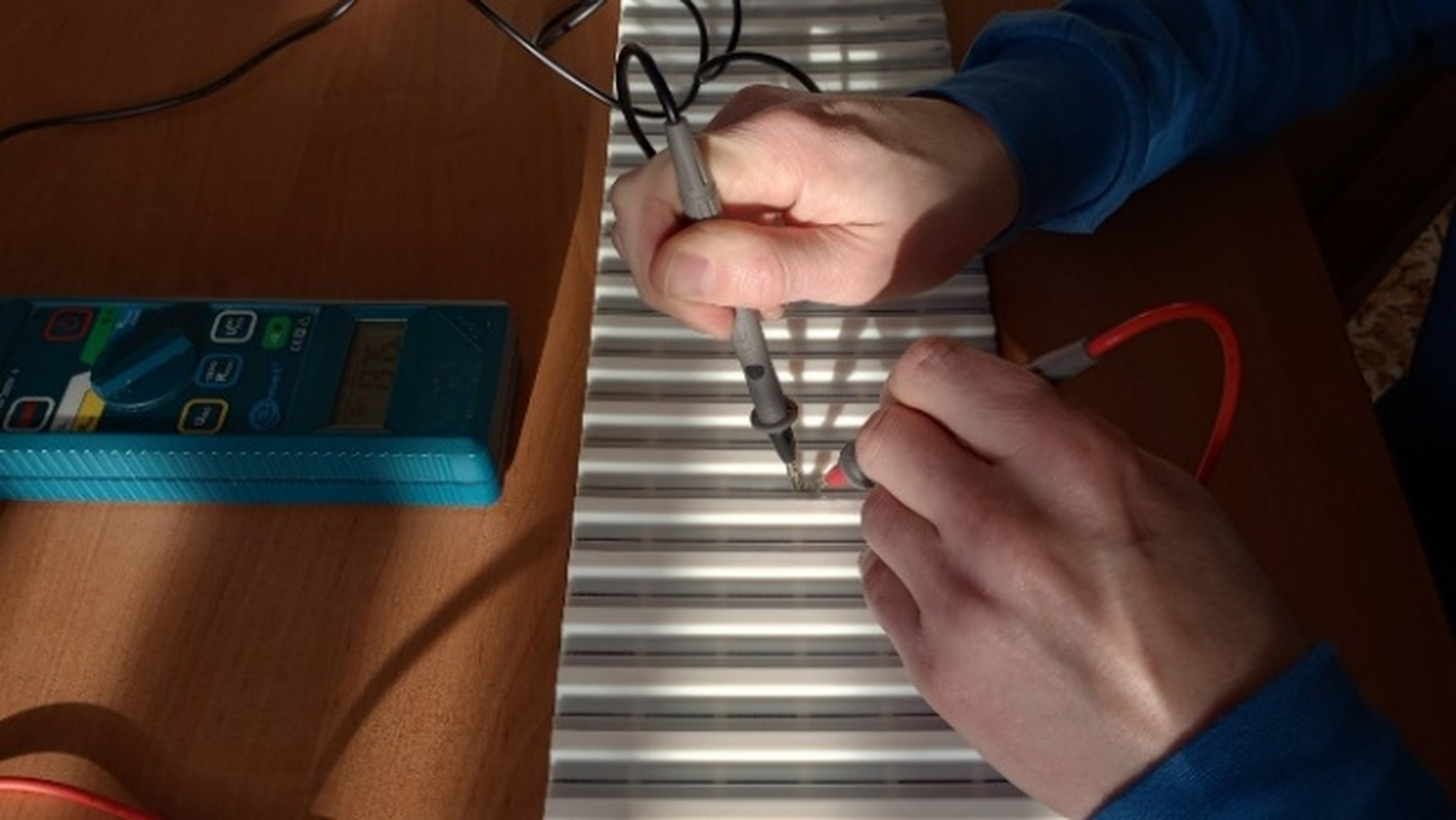 The measurements of the resistance of random cords were performed (Fig. 7), as well as five measurements of the insulation resistance between adjacent cords, using the SONEL MIC-3 and Sanwa multimeter. The tables present the average values of the measurements along with the estimated uncertainties: partial uncertainty related to random error, partial uncertainty related to systematic error, and the expanded uncertainty calculated considering the law of propagation of uncertainty with an assumed expansion factor of k=2.