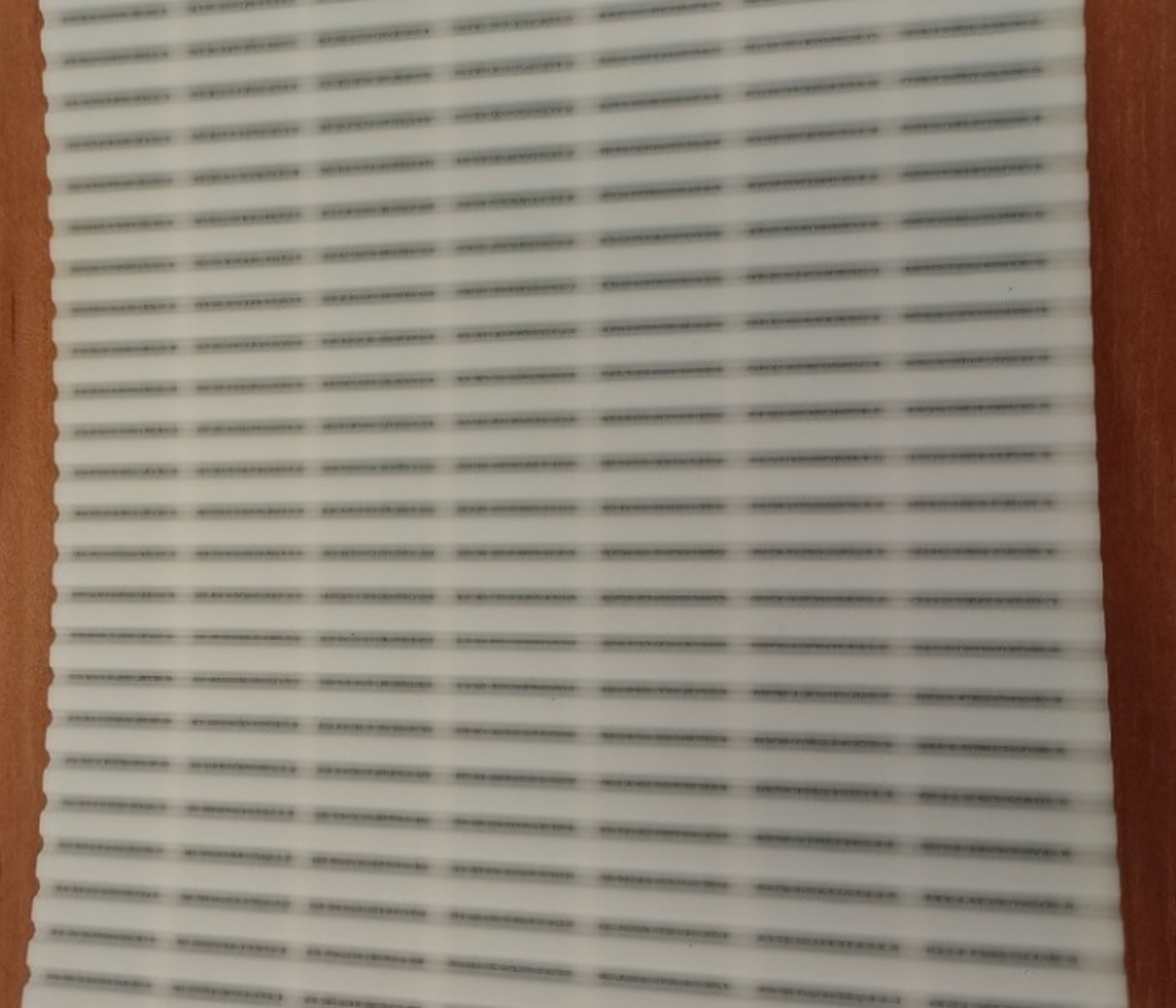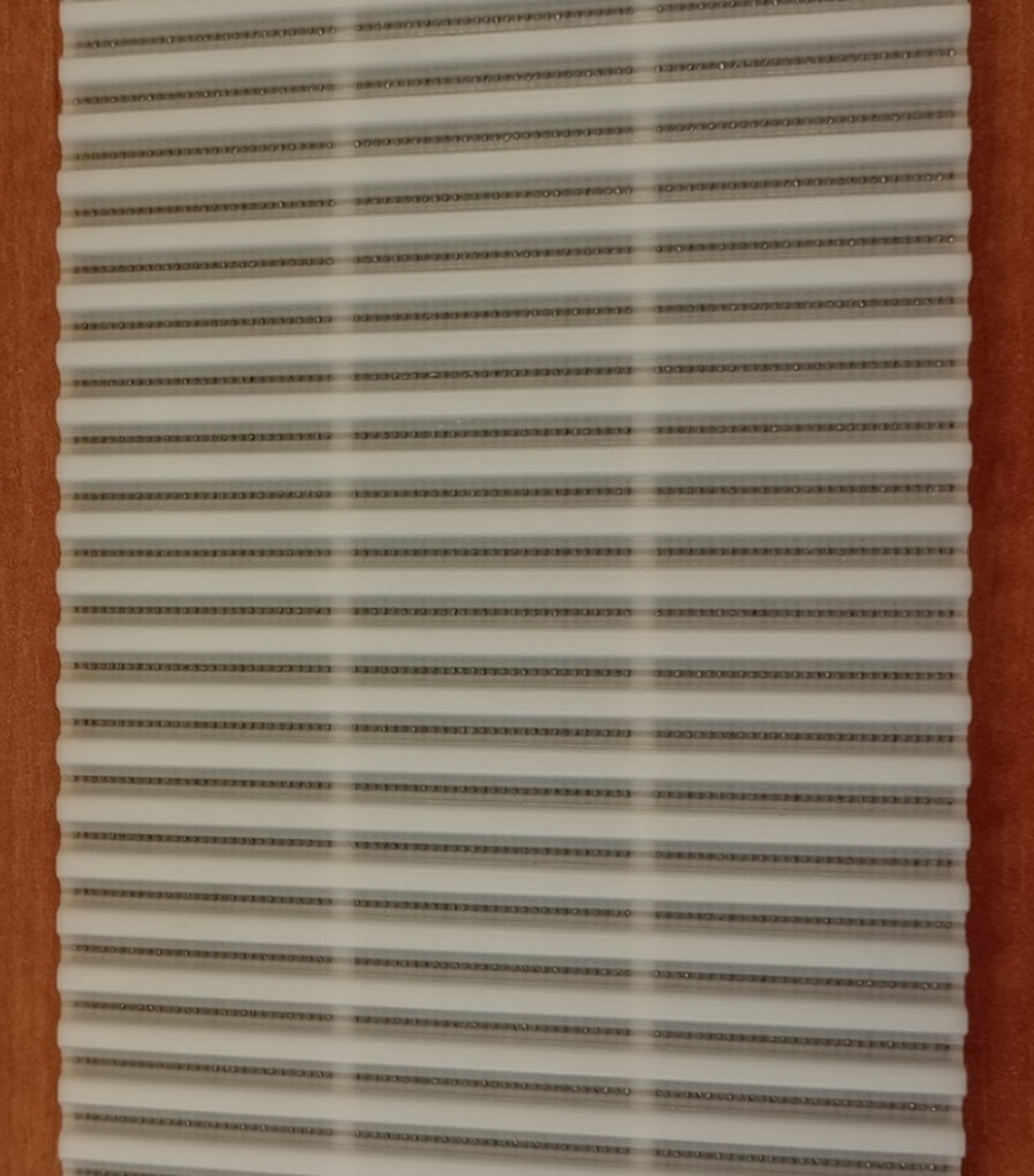 The support layer is divided into three parts with gaps, R3 in the belt code. This is done so that after being cut into three strips, the court does not protrude on the side of the strip.