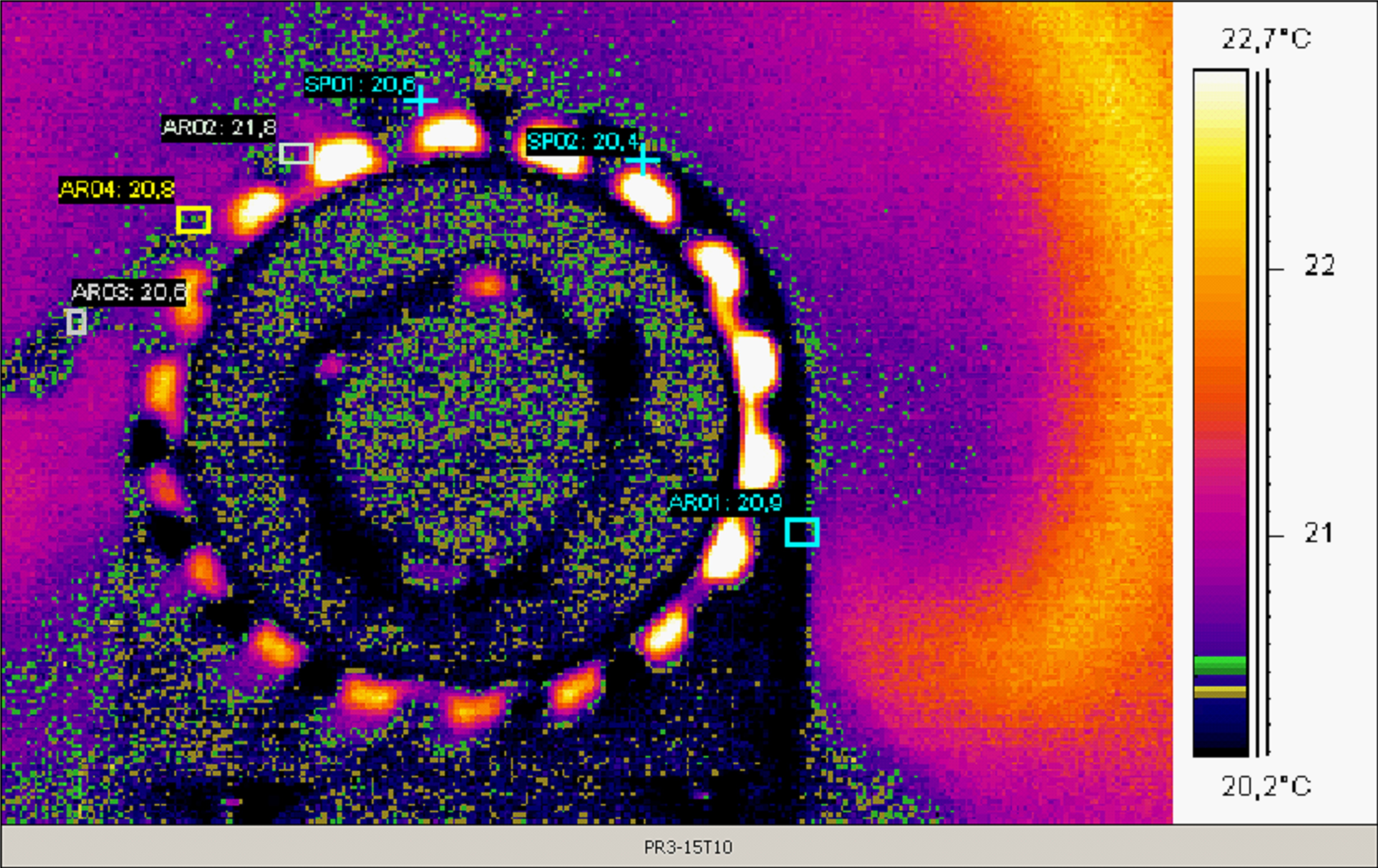 Using the cord to transmit electricity may cause the belt temperature to increase. An additional problem is the heating of the belt caused by energy dissipation and friction against the wheels. This is shown by research conducted using an infrared camera at the SIMR department of the Warsaw University of Technology. (Fig.15).