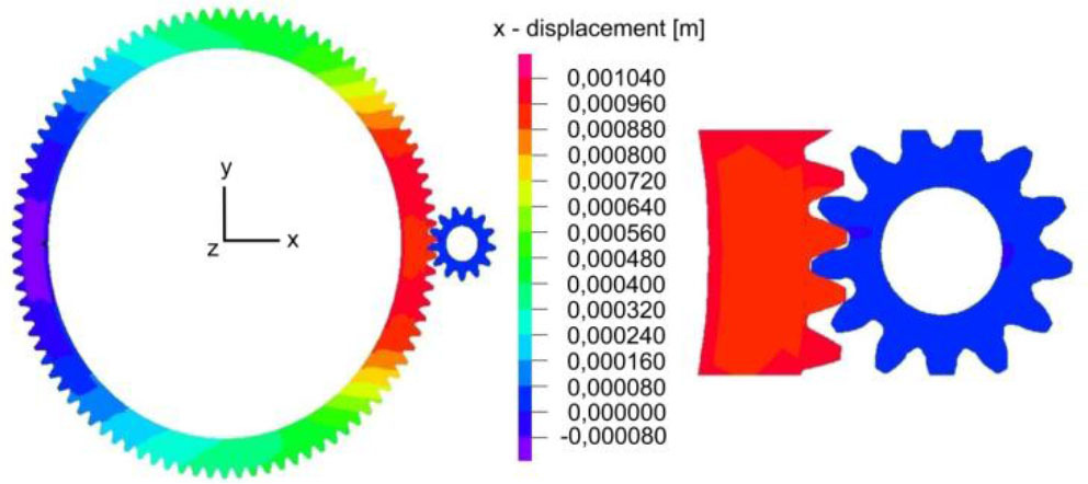 As a result of the identified deformations the working pressure angle αw is decreased. These phenomena also has an impact on teeth strength.