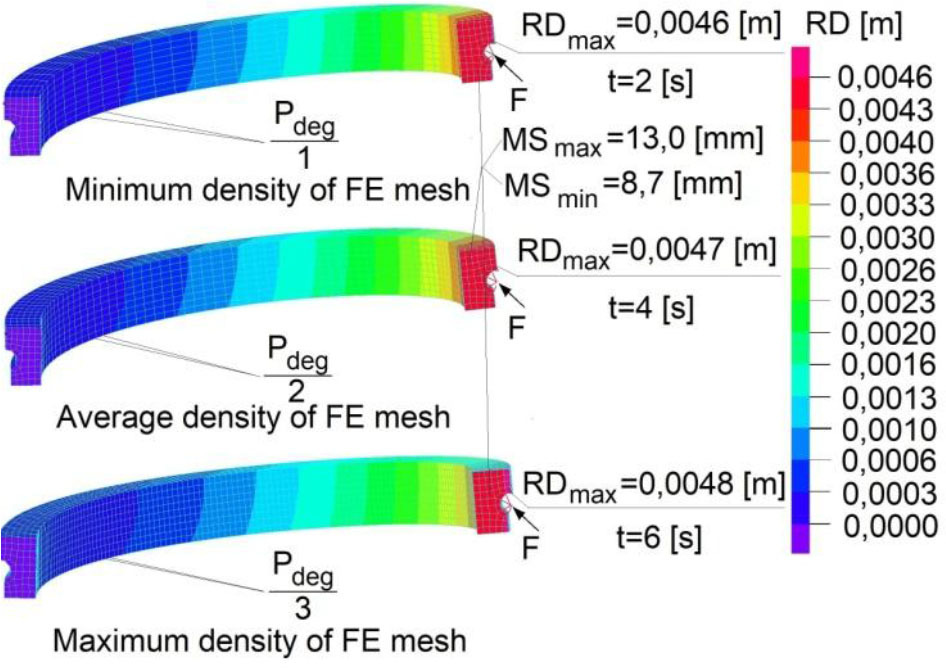 In contrast, the characteristic of the replacement contact zone of the bearing implemented in the model was determined according to the method described in [2] and is presented in Fig. 5. Additional information regarding, among others, the finite element mesh parameters of the contact zone model have been included in Appendix B.