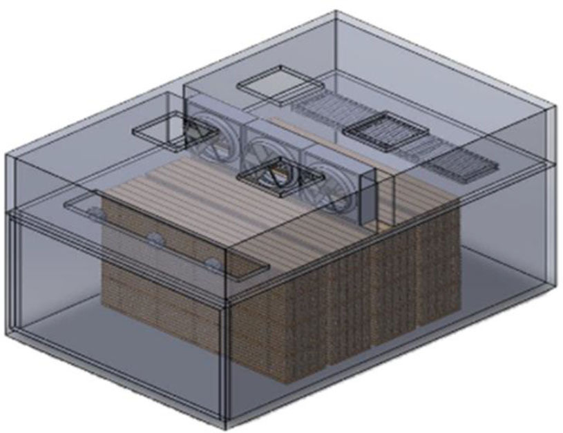 For the computer-aided design of the 3D model of the drying chamber, the following dimensions of the body were taken into account: height 2.25 m, width 5.703 m, length 7.291 m, with a wall thickness of 5 cm, and parameterized dimensions (refer to Tab. 1).