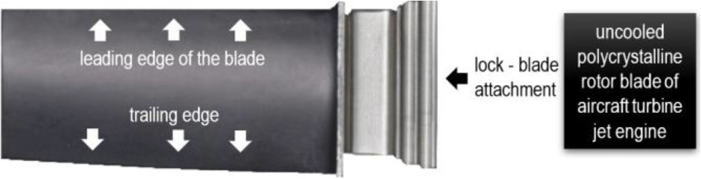 In aviation, the gas turbine has found wide application due to the relatively high efficiency of the energy conversion process, amounting to 30–45%. Its most important feature is the high operating temperature of the blades. Nickel-based superalloys are widely used due to their particular combination of very good mechanical properties and good structural stability at high temperatures [1÷3]. However, increasing the operating temperature of blades made of nickel superalloys is limited. This is due to the barrier of reducing the heat resistance of the superalloy in the presence of high exhaust gas temperature. A number of measures are taken to reduce the temperature of the blade superalloy, such as allowing internal cooling and applying coatings [4÷11].