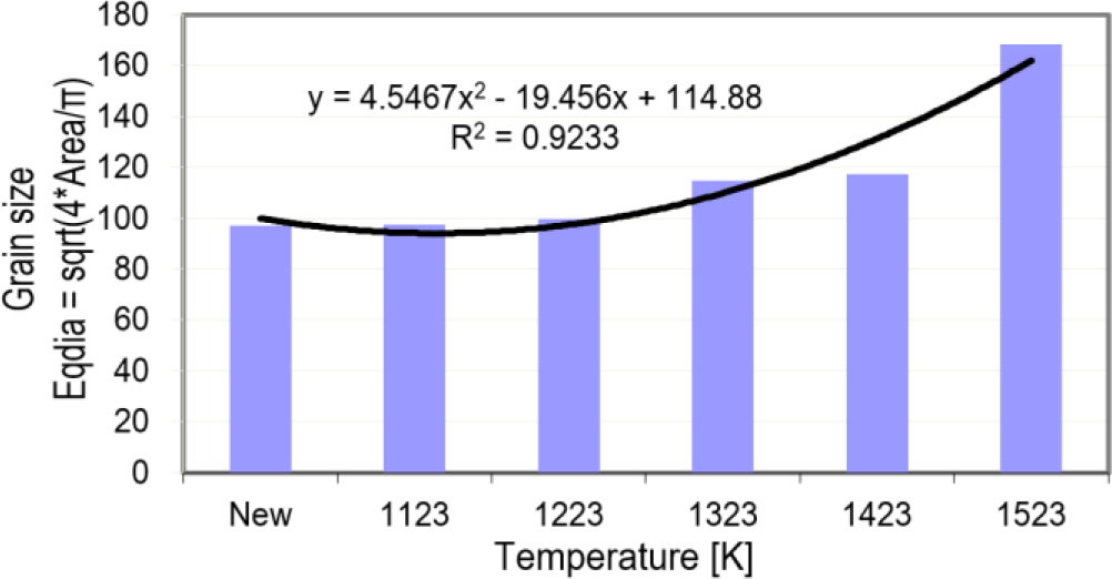Alloy grain growth was identified under the impact of high temperature, mainly above 1223 K.