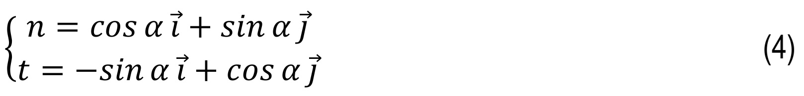 and normal and tangential unit vectors based on the contact plane are:
