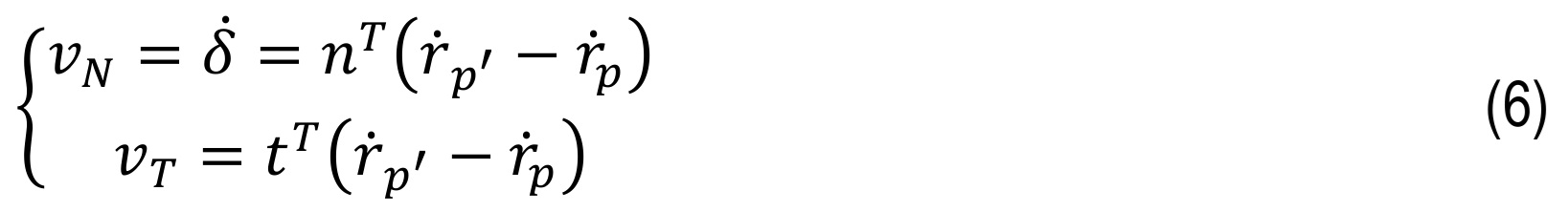 where Fₙ, Fₜ are normal contact force and friction force and eliminating friction force, normal contact force is obtained as follows:pn,Fpt are normal contact force and friction force and eliminating friction force, normal contact force is obtained as follows: