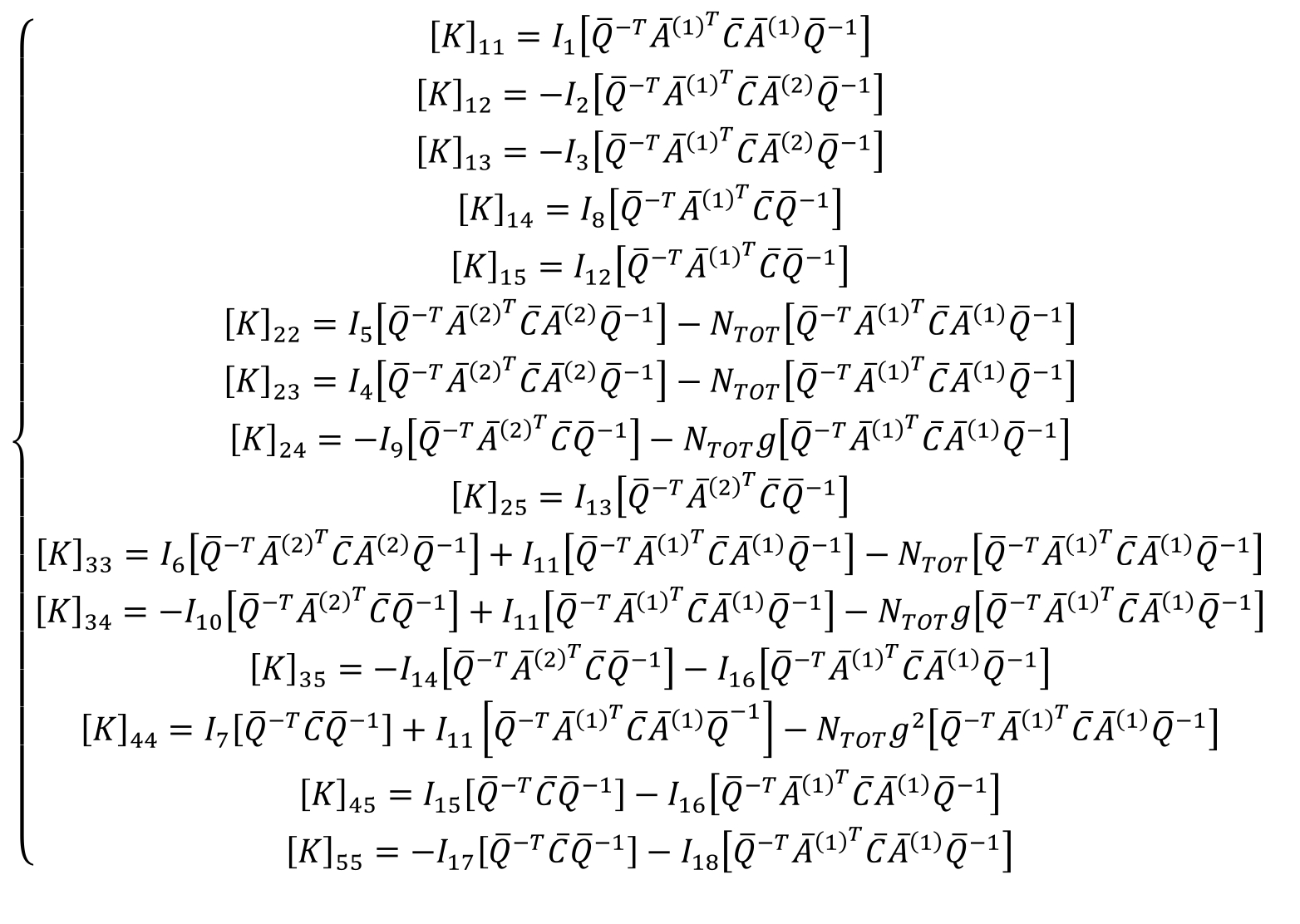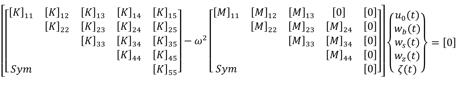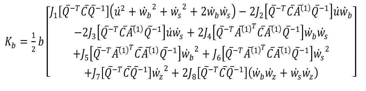 It is possible to replace the energy using Eqs. (32)–(52). To derive the fundamental equations of motion, Eqs. (A.1), (27), and (31) are combined to obtain Eq. (A.7), where the constituents of the mass and stiffness matrices are presented in Appendix as Eqs. (A.8) and (A.9), respectively.