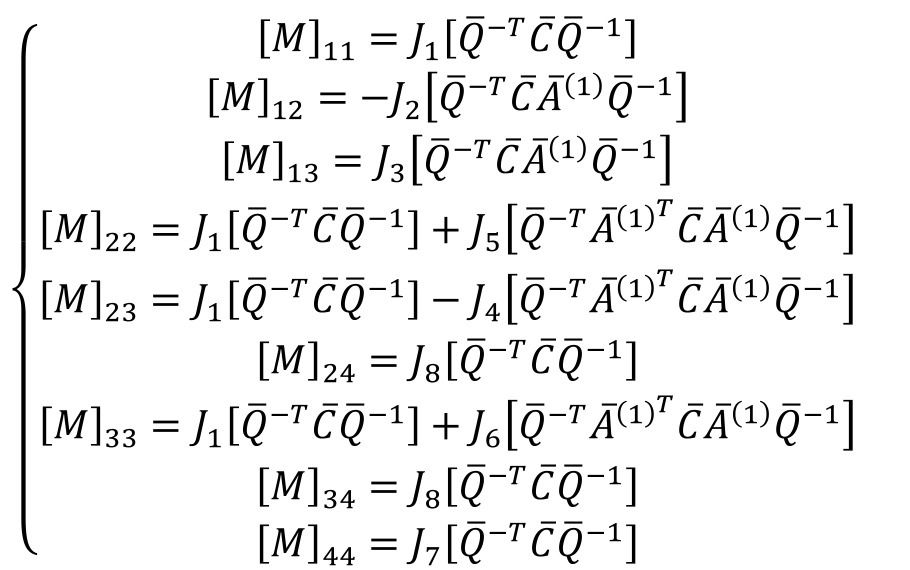 By which the Qij denote the elastic coefficients of the beam that can be stated as: