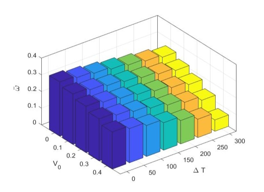 Natural Frequencies as Three-Dimensional Bar Chart Under different values of External Electric Voltages and Temperature Differences values